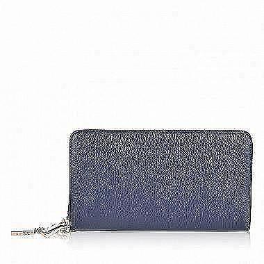 Закрывается на молнию. Внутри три отделения для купюр, разделенные карманом на молнии для мелочи и перегородкой, два открытых кармана и кармашки для пластиковых карточек.