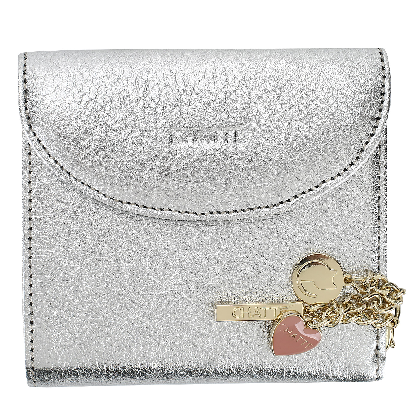 Складное кожаное портмоне Chatte Amelie shine CHA-6470SC/CIN/AE-6T_pc - 2000558256209 серебряный натуральная кожа 9,5 x 10 x 2 Цена 5148 руб. купить в интернет-магазине PanChemodan.ru в Ульяновске