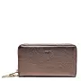 Эффектное портмоне из металлизированной натуральной кожи отличается дизайном повышенной эргономичности. Аксессуар на молнии располагает отделениями для купюр, монетницей на молнии, двумя открытыми карманами, а также набором из 12 слотов для визитных и пластиковых карточек. Портмоне украшает съемный фирменный брелок.