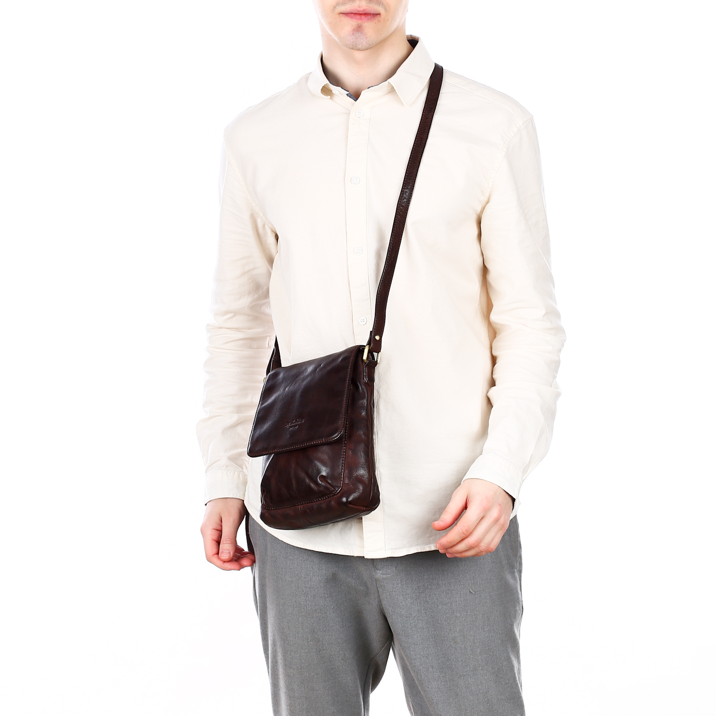 Мужская кожаная сумка с плечевым ремешком